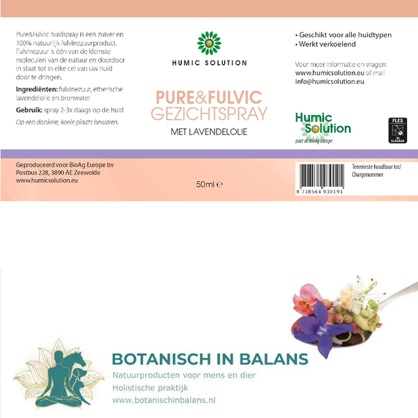 Pure & Fulvic Gezichtsspray bevat fulvinezuur met verzachtende Lavendelolie.